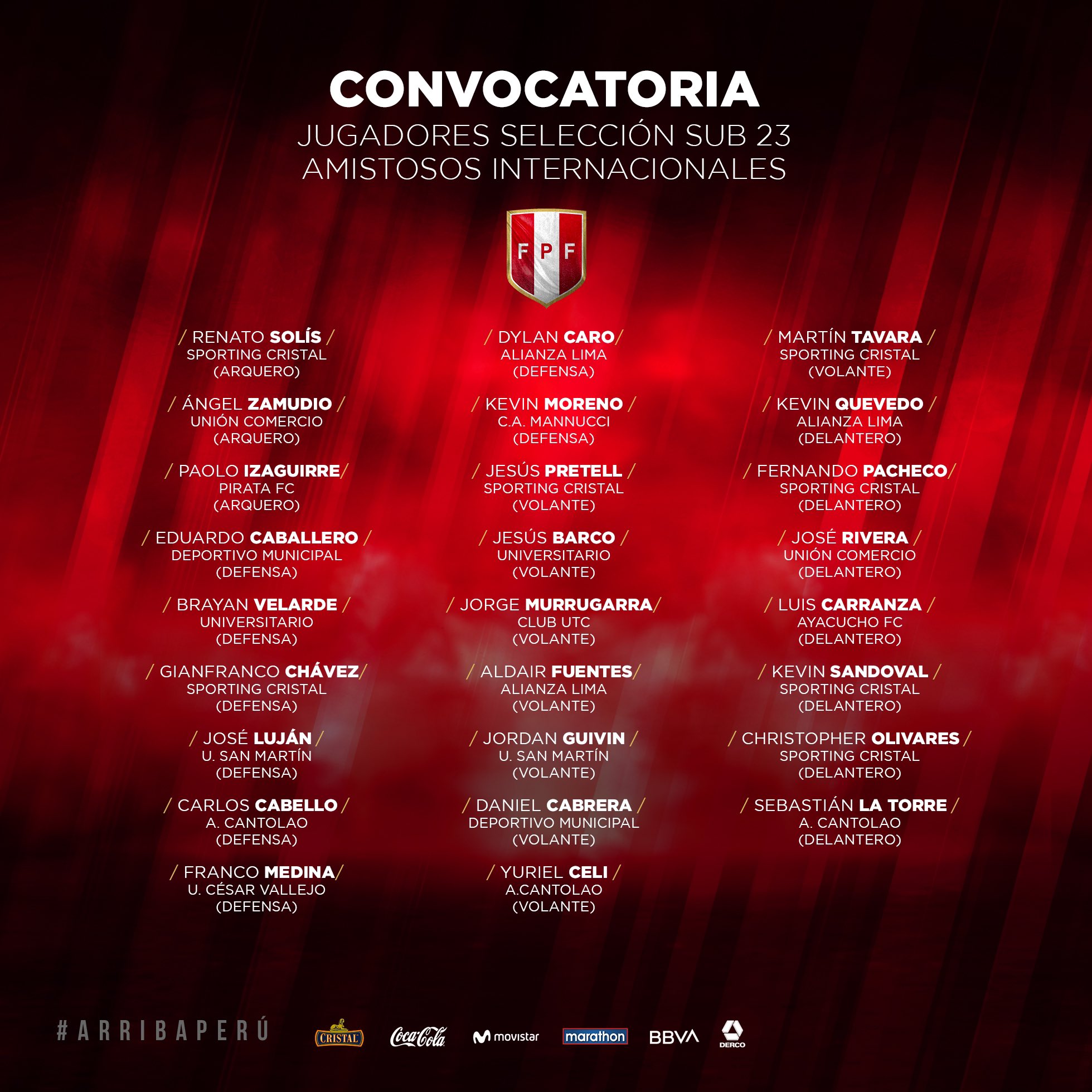 Seleccion Peruana Su Twitter Anunciamos La Lista De Convocados De Nuestra Seleccionperu Sub 23 De Cara A Los Encuentros Amistosos Frente A Su Similar De Colombia Del Mes De Octubre