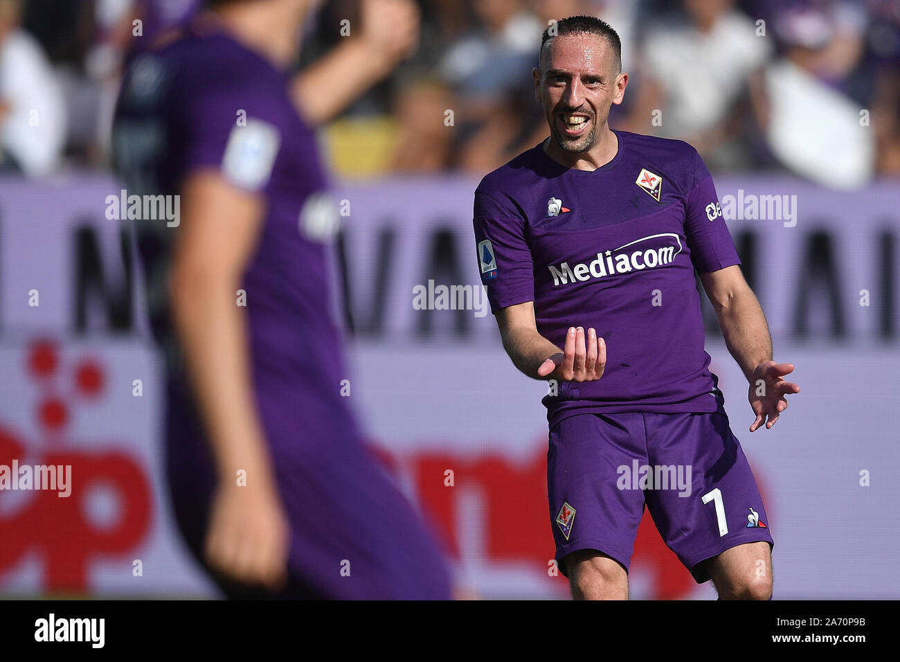 Federico Chiesa Fiorentina Franck Ribery Fiorentina Celebrates After Scoring His Team S First Goal During The Italian Serie A Match Between Fiorentina 1 2 Lazio At Artemio Franchi Stadium On October 27 2019 In